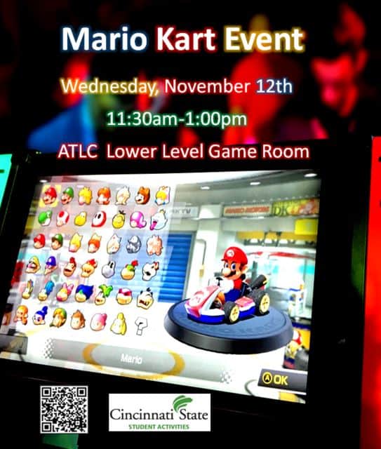 Come race with us!  We will run several Mario Kart games between 11:30am-1pm.