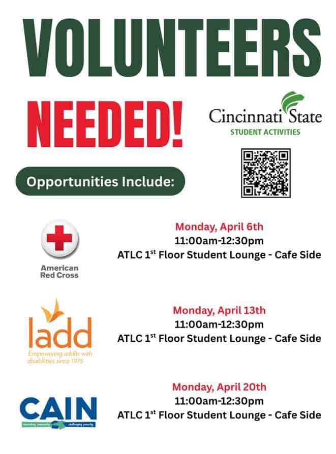 Student Activities will feature amazing representatives from external organizations for the first three Mondays in April.  Each Monday a new organization will be on campus to share information about the exciting work they are doing in the community and will provide information on how YOU can get connected through volunteer opportunities.