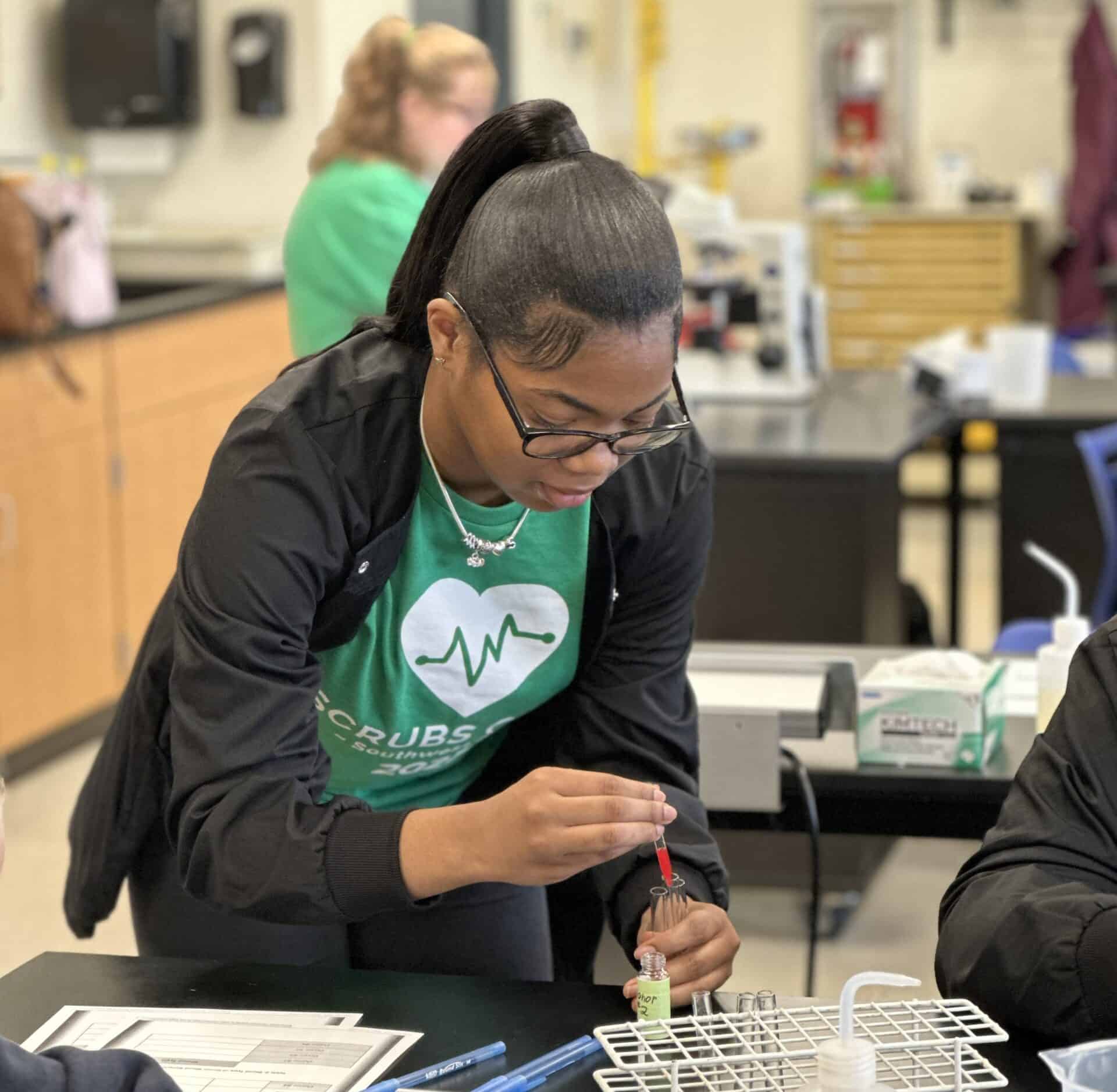 During the first week of May 2025, Cincinnati State hosted “Scrubs Camp 2025,” giving about 50 students from Diamond Oaks high school opportunities to explore a variety of career options in healthcare while interacting with CState faculty and staff members.