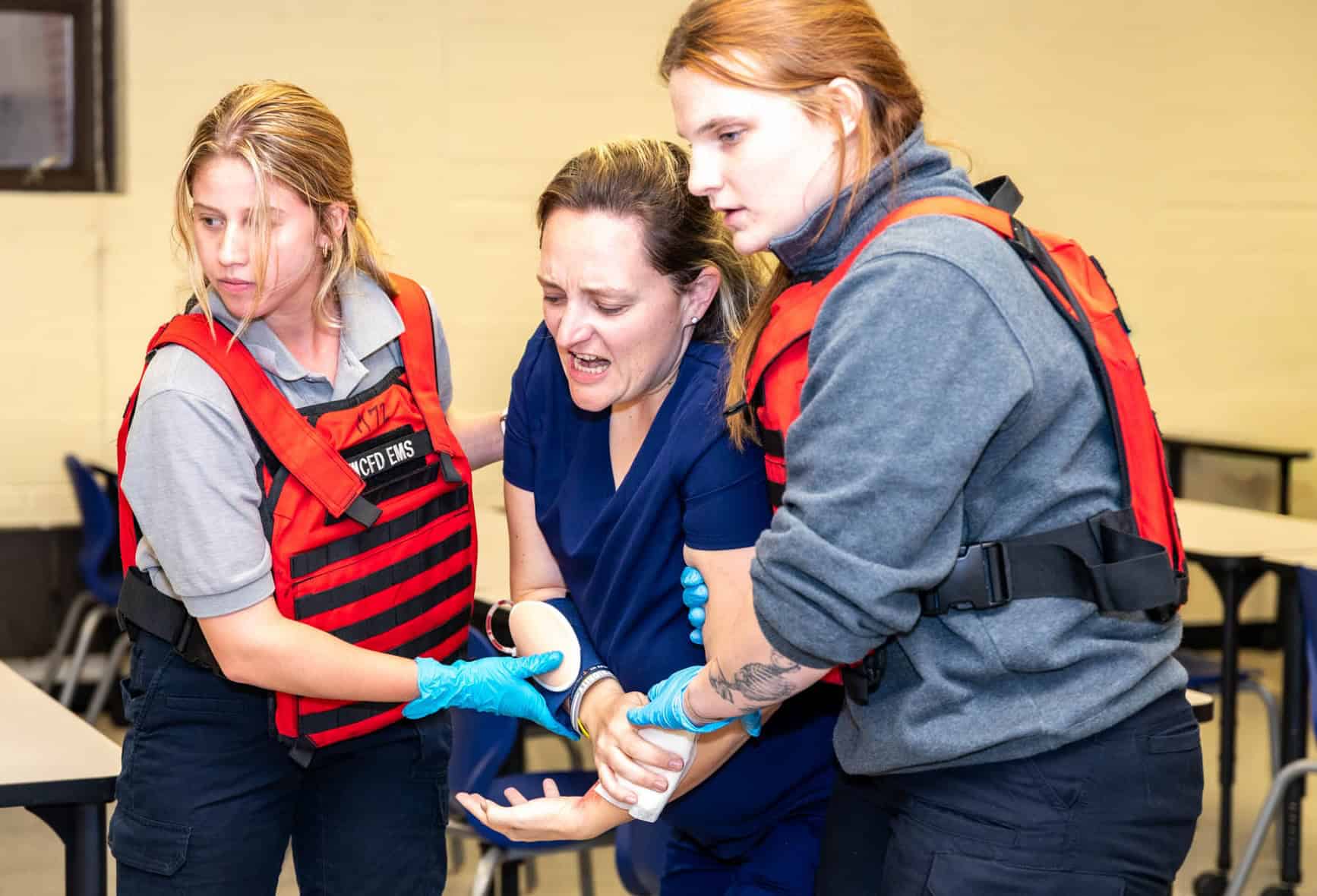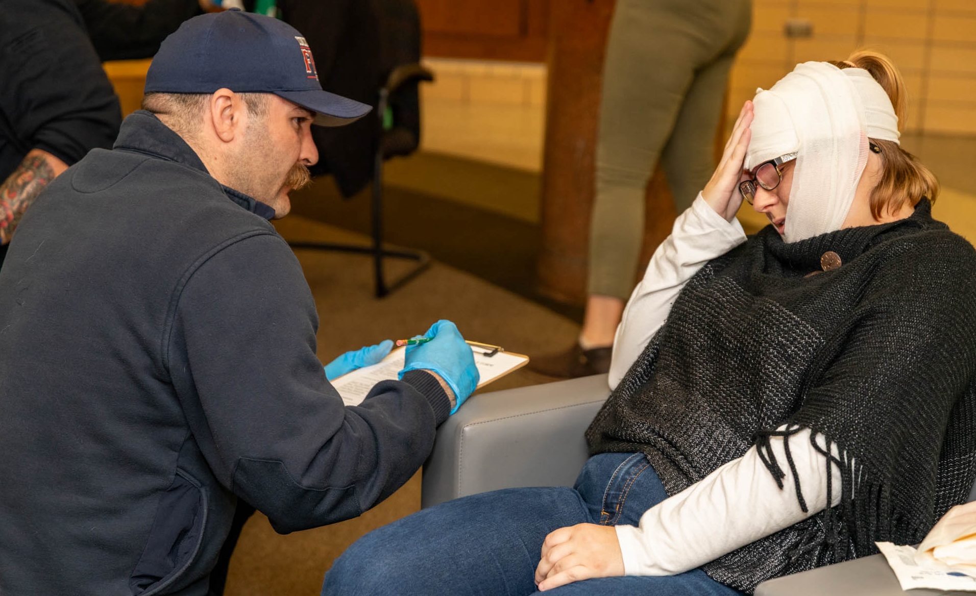 Students were joined by the Cincinnati State Police Department and more than 30 volunteers, including local medical professionals who supervised the drill, volunteers who served as simulated victims, and students from the College’s Audio/Video Production degree program, who recorded the event and will prepare a video “documentary.”