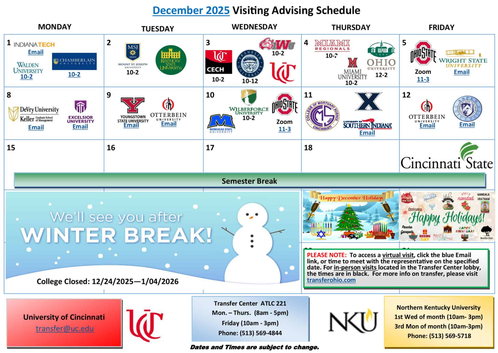 - Ask questions that are pertinent to the representative’s institution. While they may be able to answer some questions regarding Cincinnati State, you are encouraged to connect with a Cincinnati State advisor.